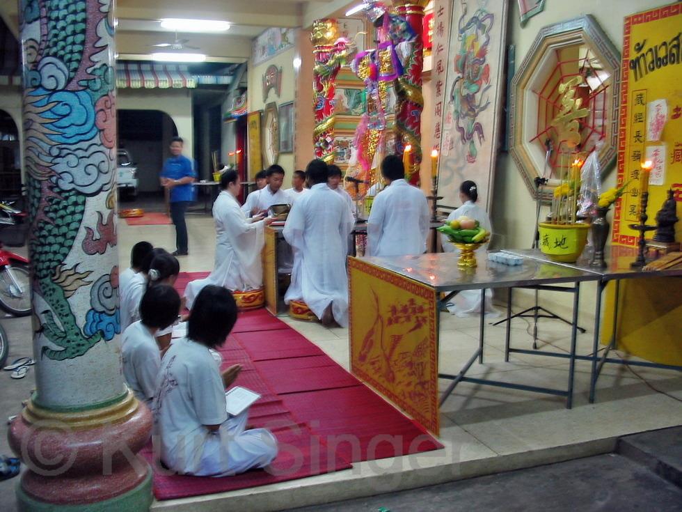 Abends erlebe ich in einem nahegelegenen chinesischen Tempel noch eine besondere Feier, deren Liturgie ich erstmals antreffe. Es ist faszinierend, den Gesängen und Gebeten zu lauschen und dabei den Ritualen zuzuschauen.