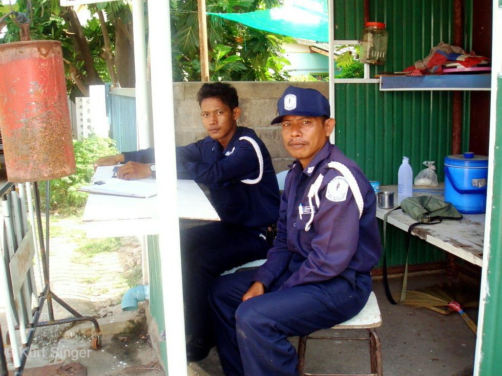 Heute fahre ich wieder mit dem Song Thaew in die Stadt. Die Autos haben keine festen Fahrzeiten, und so muss ich manchmal recht lange warten. Nun gibt es in unserem Mu Ban nur zwei Aus- bzw. Einfahrten, und diese werden von uniformierten (wie sonst?) Wächtern kontrolliert. Diese sind stets sehr freundlich und sie kennen mich nach den paar Tagen Anwesenheit bereits, grüssen mich schon von Weitem, entweder auf Thai oder in Englisch. Da ich in der letzten Soi wohne, ist der südliche Ausgang also direkt dahinter. Ich erzähle dem Wächter, dass ich auf das Auto warte. Oh, sagt er, das dauert noch ein wenig. Ich könne ruhig nach Hause gehen, er ruft mich.