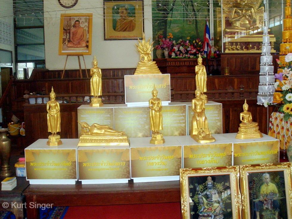 In der Sala des Wat stehen verschiedene Buddhafiguren aus den unterschiedlichen Kulturperioden und Stilrichtungen. Leider habe ich mir diese beim Fotografieren nicht gemerkt. Als ich das an einem späteren Tag nachholen wollte, waren die Figuren wieder anders arrangiert und die (englischsprachigen) Erklärungen waren nicht mehr vorhanden. Ich werde also versuchen müssen, das anhand meiner sonstigen Aufzeichnungen und Recherchen nachzuvollziehen. Auch hier werde ich bestimmt Hilfe finden.