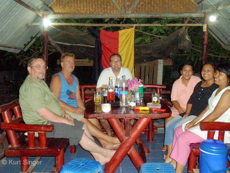 Ah ja, der Pujai Ban kennt ihn bestimmt, dort rufen wir jetzt auch an. Danke, dass sie die Auskünfte gegeben hat, einen schönen Abend noch, und es sei heute ja noch kein Regen gefallen, im Dorf auch nicht? Aber vielleicht morgen. Der Pujai Ban kennt Werner tatsächlich, aber die Telefonnummer weiss er auch nicht. Er kann auch im Moment nicht aus dem Haus gehen, es sind nur ein paar Schritte, aber er kann sie nicht tun, weil er gerade Besuch habe. Aber wenn wir später noch einmal anrufen (es ist gerade 8 Uhr abends) wird er es gerne noch einmal versuchen. Ich habe inzwischen auch die richtige Telefonnummer gefunden, die ich mir früher schon einmal notiert hatte.
