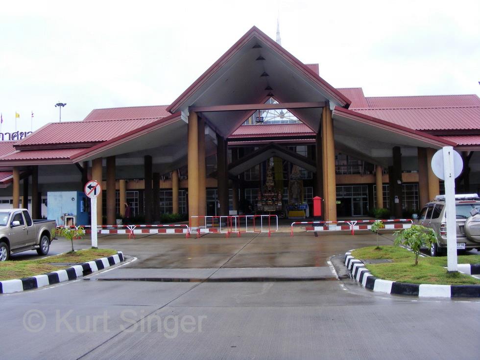 Im Hotel mache ich aus, daß mich am nächsen Morgen das hoteleigene Auto zum Flughafen bringt. Ich mag diese 6-Stunden-Fahrt nach Chiang Mai nicht noch einmal machen, und man empfiehlt mir die Nok Air mit einem Sonderangebot von 1250 Baht. Zu Fuß mache ich mich also jetzt auf den Weg dorthin, um das Ticket bereits zu kaufen. Der Flughafen liegt innerhalb der Stadt, keine 1000 m von meinem Hotel entfernt. Dort angekommen sehe ich auch den Schalter von Thai, und hier kostet der Flug 965 Baht. Hätte ich ihn per Internet gebucht und mit Credit Card bezahlt hätte er sogar nur 550 Baht gekostet ! Ich kaufe also das Ticket – und mache mich auf eine lange Wartezeit gefaßt. Inzwischen hat es zu Regnen begonnen, nein – zu schütten. Ein tropischer Regen halt, und es sah nicht so aus, als würde er bald aufhören.