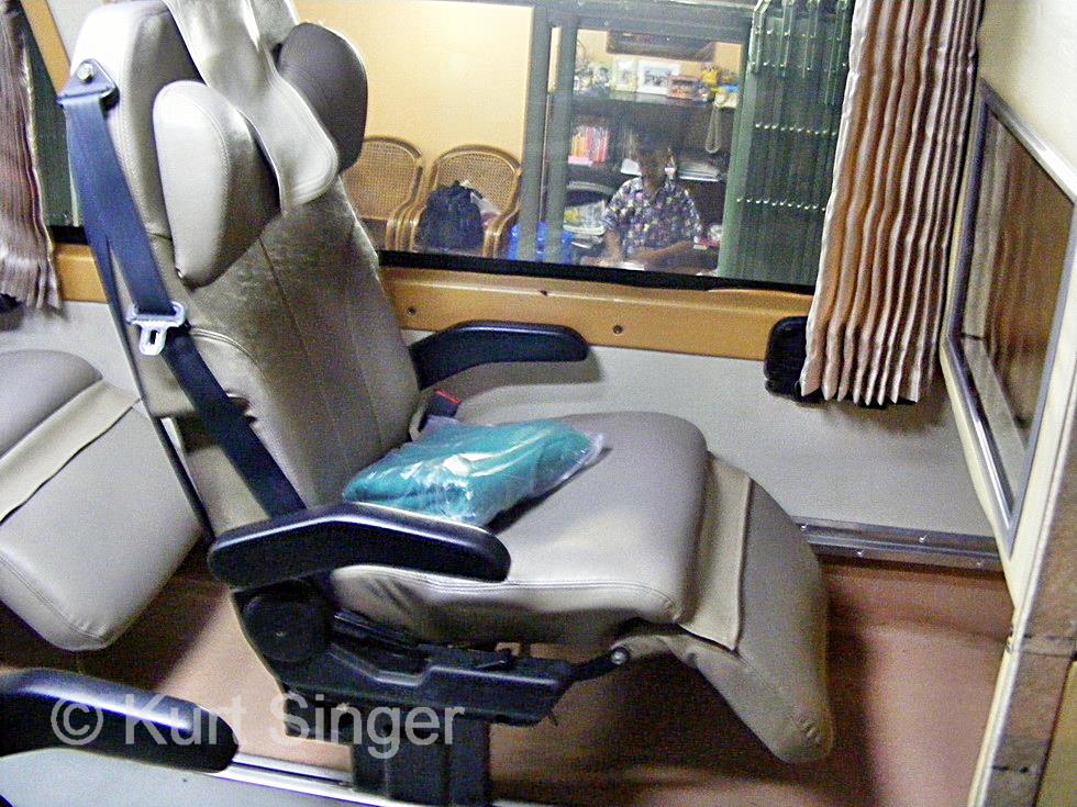 Ich habe bereits bei Ankunft in Chiang Mai die Weiterfahrt direkt nach Korat gebucht und auch den besten Sitz, 1. Reihe Sitz D, erhalten. In diesem VIP Bus bedeutet das große Beinfreiheit, welche auch für einen 2-m-Mann weit ausreichend wäre. Unterwegs nur gestört durch einen Restaurantaufenthalt überstehe ich die 13 Stunden Fahrt auf einem bequemen Sitz ausgezeichnet und ausgeruht.