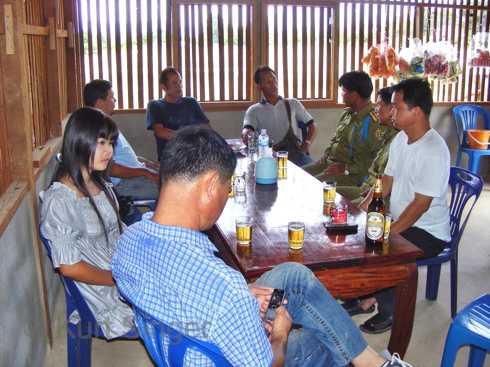Die Art und Weise des Umgangs miteinander zeigt mir, dass hier regelmäßige Treffen stattfinden, denn sie kennen sich sehr gut. Wir essen und trinken wieder etwas, denn die Laoten sind sehr gastfreundlich und lassen uns auffahren, aber partout nicht zahlen, auch ich darf nicht. Wir brechen aber nach nicht zu langer Zeit auf, denn ich will ja noch über Chiang Mai nach Mae Hong Son fahren, wobei wir das Ticket bereits am Vortag gekauft haben.