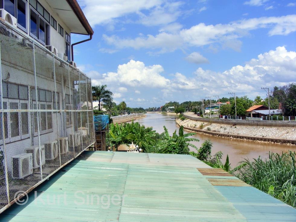 Nachdem ich früh im benachbarten Hotel gefrühstückt habe, fahre ich mit Bruno und Mon, seiner Frau, nach Nakhon Sawan. Von dort geht um 10 Uhr ein Bus nach Sukhothai, wo ich dann um 13:15 Uhr ankomme. Ich habe mir auf Empfehlung das River View Hotel ausgesucht und lasse mich von einem Song Theaw dorthin bringen. Die Lage am Fluß macht dem Namen tatsächlich Ehre, denn von einer Terrasse aus hat man einen schönen Ausblick.
