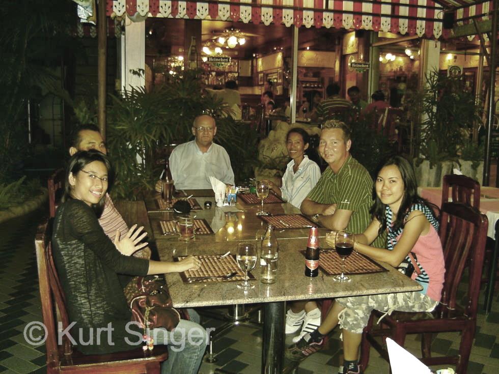 Pat und ihr Vater, Lek begleiten mich dorthin, und es schmeckt uns ganz ausgezeichnet. Mir ein Panaeng, die beiden essen Schnitzel. Irgendwie doch verkehrte Welt.