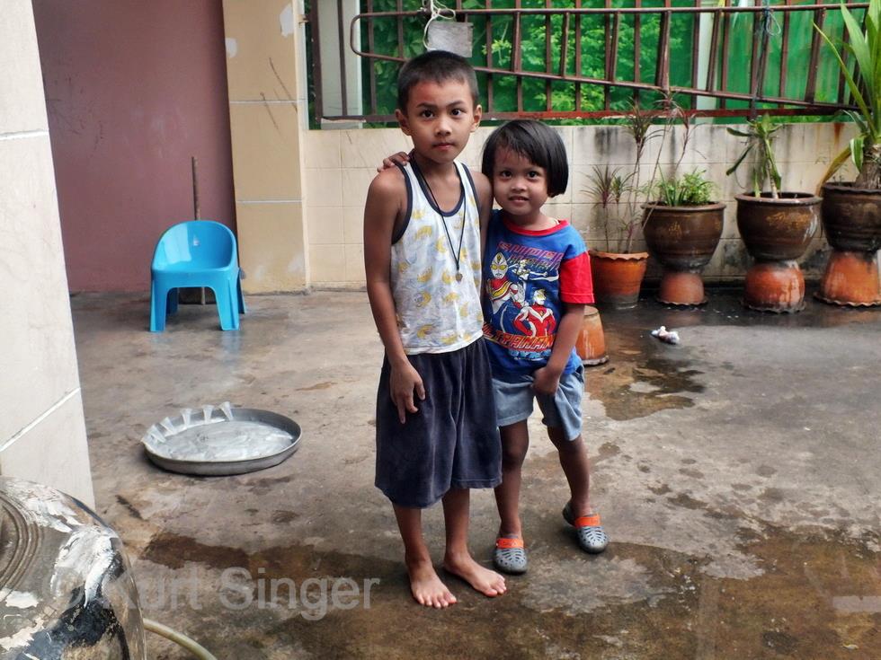 Die Kinder schauen gelegentlich über die Mauer, was der Opa Farang da so treibt. Heute habe ich keinen Lutscher für sie, man muss es ja auch nicht übertreiben und zur Gewohnheit werden lassen, das schadet den Beziehungen.