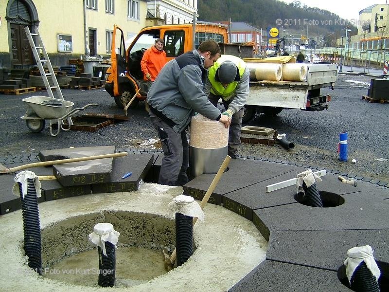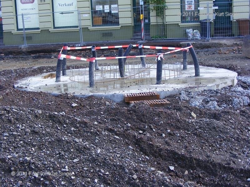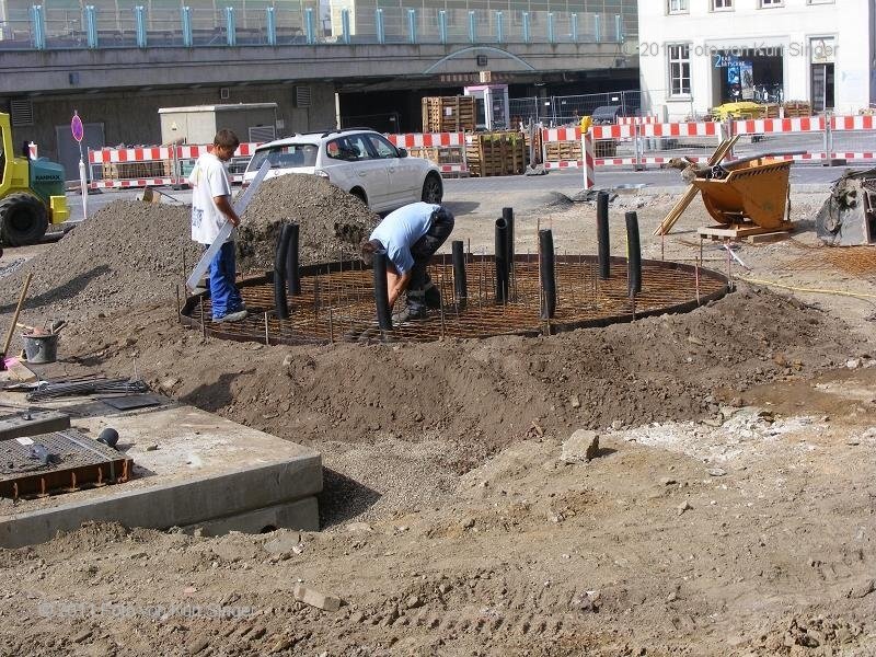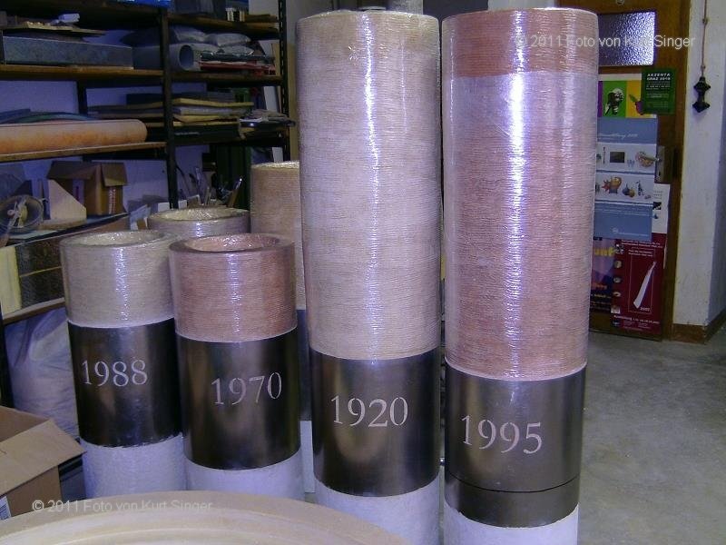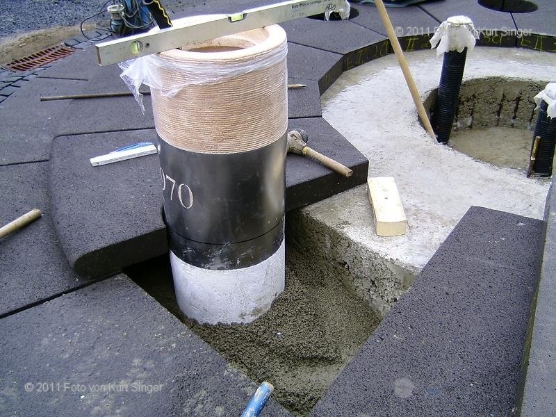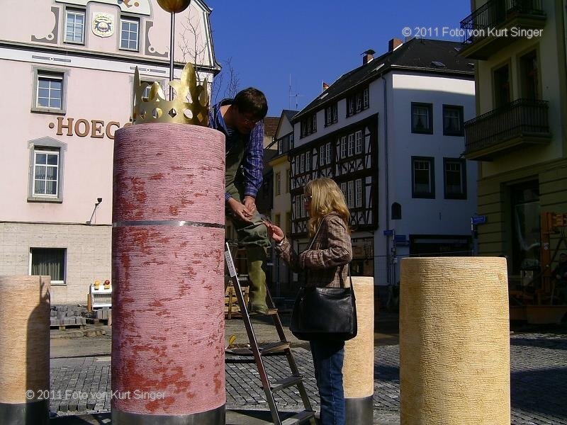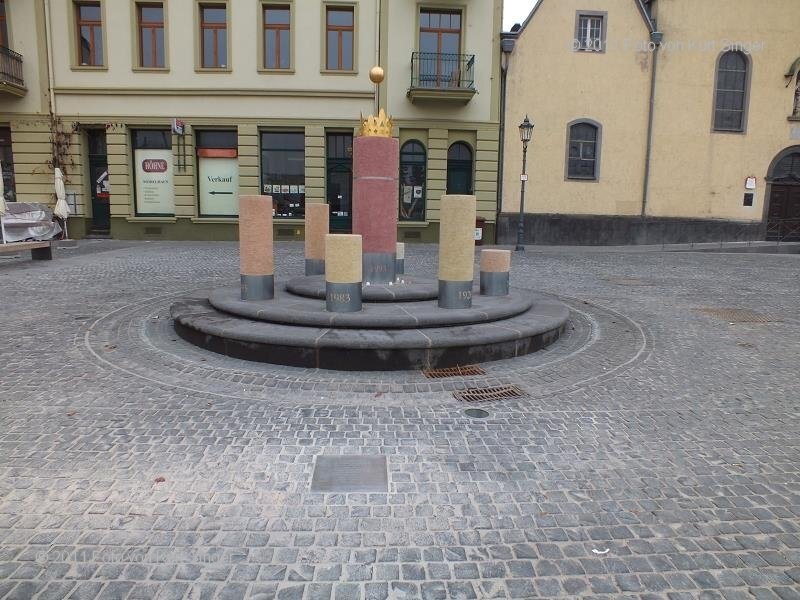 Die einzelnen Stelen zeigen die Höchststände verschiedener Jahre