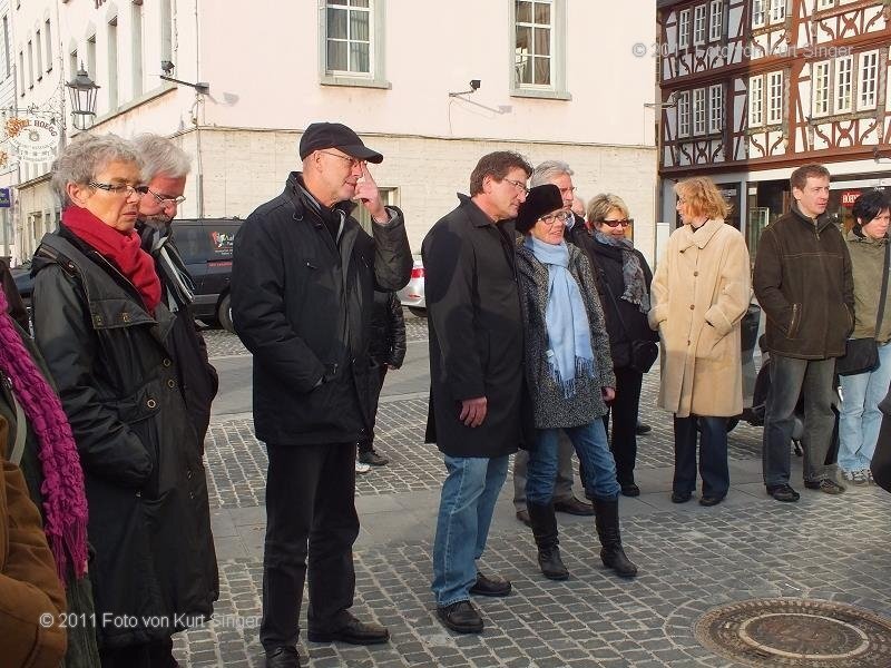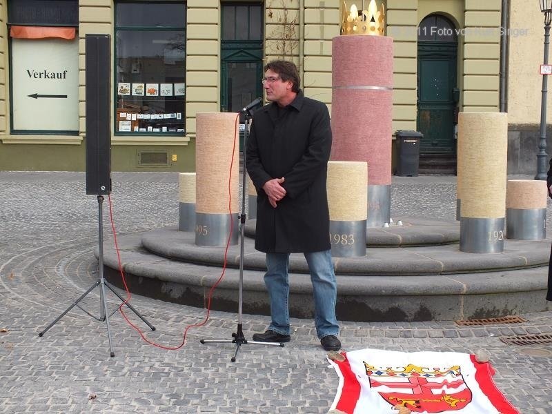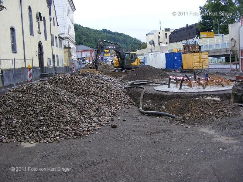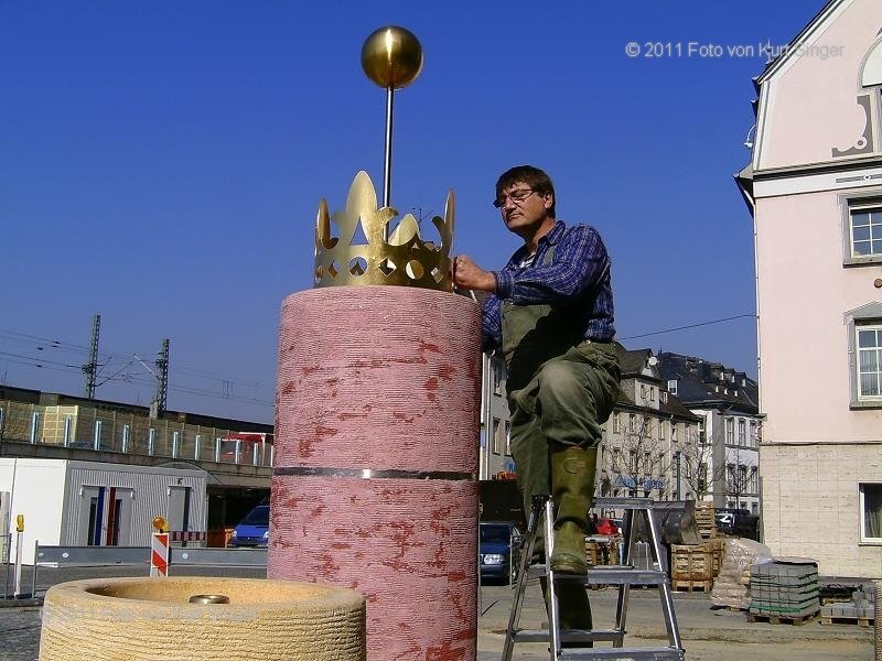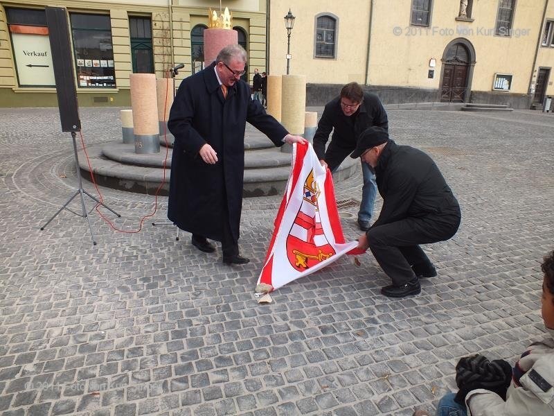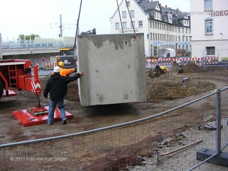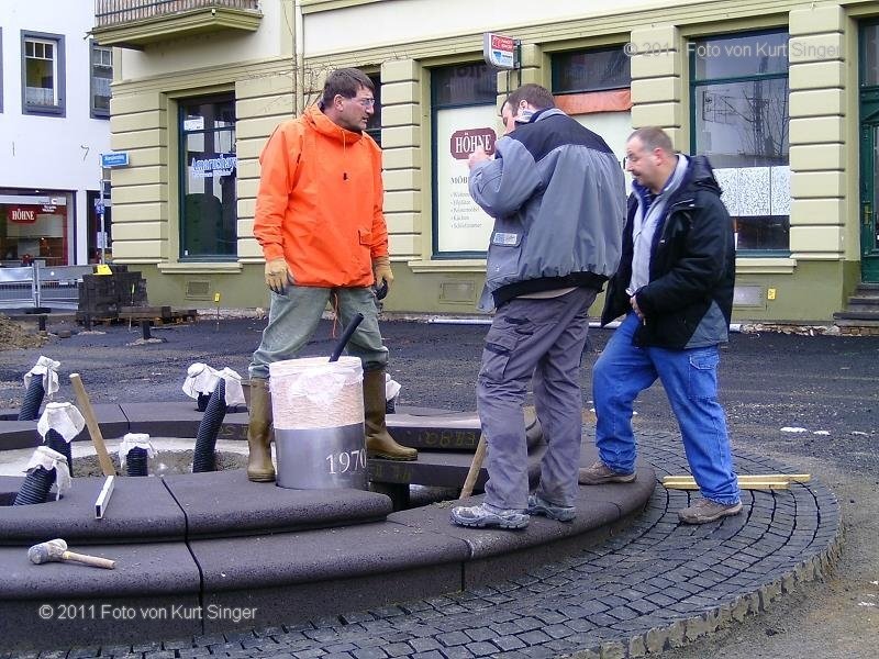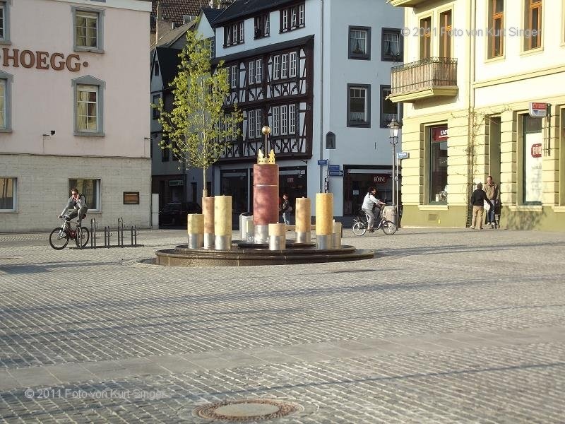 Die einzelnen Stelen zeigen die Höchststände verschiedener Jahre
